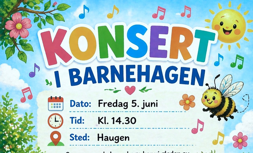 Som syngende barnehage har vi gleden av å invitere til konsert. I tillegg blir det lansering av vår nyinnspilte, egen barnehagesang. Bare å glede seg, det gjør vi!