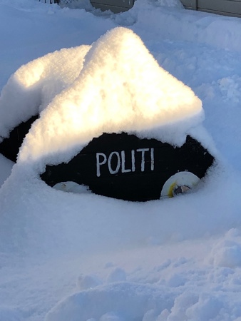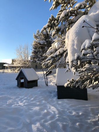 Snø gir også nye erfaringer på eget område. Dyp snø hvor det ikke er måket gir andre muligheter enn områder som er måket, vi har begge alternativ i tillegg til gangveier til alle avdelinger.