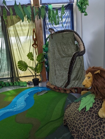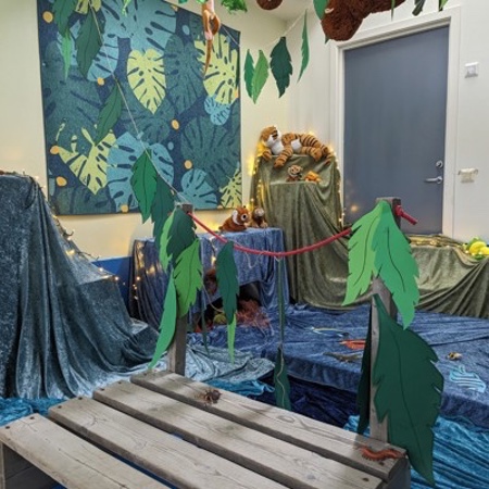Her besøker gjestene våre vår egen jungel, tilrettelagt for temaarbeidet om Kenya.