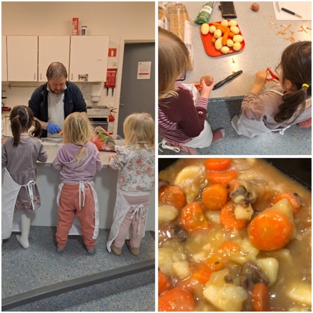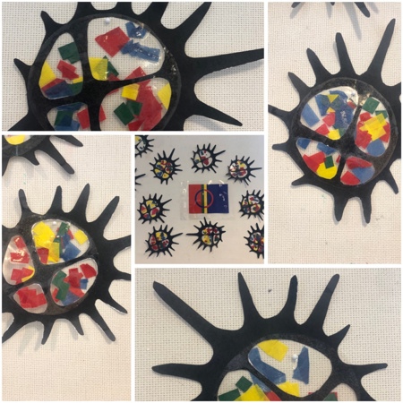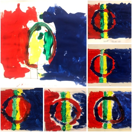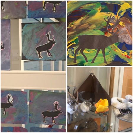 I dag har vi flagget med det samiske flagget. Barna er kjent med flaggets farger gjennom egne formingsaktiviteter. Gjennom uken er det også laget samisk festmat, Bidos og Gahkko (samisk festbrød). Reinsdyrspølse blir tilbudt som pålegg, for de som vil smake.