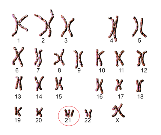 Å ha Downs syndrom betyr å ha et ekstra kromosom. Kromosomene ligger sammenkrøllet i omtrent alle cellene i kroppen vår. Når man bretter ut kromosomene og sorterer dem ser de litt ut som sokkepar. Har man Downs syndrom finnes det tre «sokker», eller kromosom 21, inne i cellene, i stedet for to.