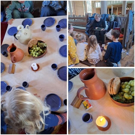 Vi er takknemlig for å bli invitert i Os kirke på påskevandring, en opplevelse for både små og store. Dette er en pedagogisk og sanselig opplevelse som er en måte å ta barna med "inn i" påskehistorien, ved å la dem bevege seg fra stasjon til stasjon gjennom viktige hendelser i påskeuken. På hver stasjon får de høre, se, oppleve og kanskje til og med smake eller gjøre noe som har med påskehistorien å gjøre. Vi fikk oppleve: