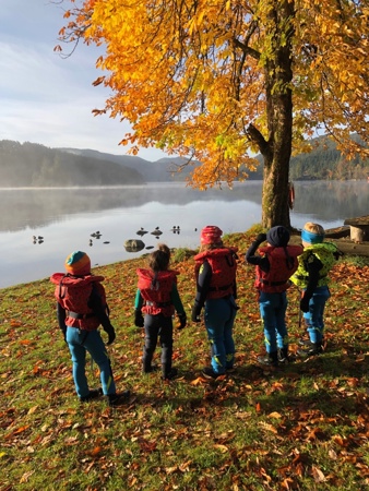 Vi går på turer der barna får kjenne vinden i ansiktet, høre blader som knitrer under skoene, og se hvordan naturen forvandler seg.