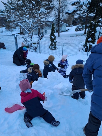 Snøen gir rom for nye gøye opplevelser, spenning, mestring, latter, lek og magiske øyeblikk. Aking i bakken, bygging med snø, kalde kinn og varme smil. Vi utforsker, sanser, og tester nye aktiviteter.